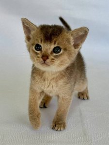 She already shows the signature traits of the Abyssinian kittens — a slender, athletic build, smooth, silky fur, and a curious nature that keeps her happily exploring the world around her. Whether she’s chasing a sunbeam or quietly resting by your side, Avrora brings peace and affection to every moment.