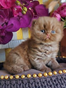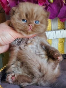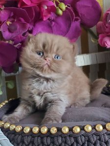 From his luxuriously fluffy fur to his round face and adorable chubby cheeks, Danis embodies all the signature traits of British Longhair kittens. His wide, soulful eyes reflect a gentle curiosity and a deep affection for those around him.