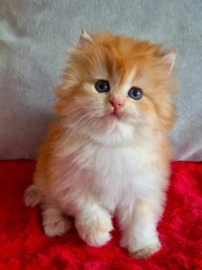 Martin’s fluffy fur invites endless snuggles, offering a glimpse into the timeless elegance of British Longhair kittens. His round face, adorned with chubby cheeks and large, expressive eyes, radiates serenity and affection. At just a few months old, Martin already embodies the classic traits of his beloved breed.