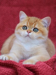 Even at just a few months old, Archi proudly displays the hallmark features of the British Shorthair kittens β a dense, velvety coat, a round face with irresistible chubby cheeks, and large, expressive eyes full of curiosity and sweetness.