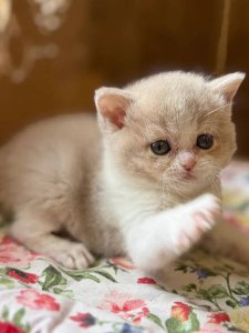 Atlanta’s round face, chubby cheeks, and soulful eyes capture the essence of the beloved British Shorthair kittens. Even at just a few months old, she radiates the quiet elegance and affectionate nature that define her breed.