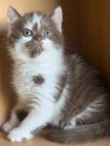 From his round face and chubby cheeks to his plush, short coat, Bombay perfectly embodies the iconic traits of British Shorthair kittens. Though still just a few months old, he already exudes the gentle charm and laid-back confidence that define this beloved breed.