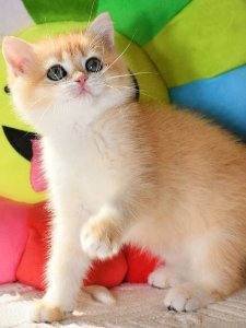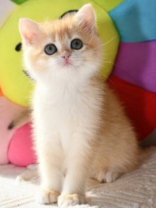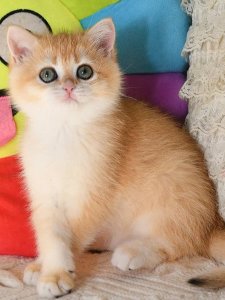 At just a few months old, Daisy already displays the hallmark traits of British Shorthair kittens—her short, plush coat, round face with chubby cheeks, and large, expressive eyes that radiate warmth and affection.