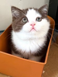 Even at just a few months old, Pluto already shows the hallmark features of the British Shorthair kittens β his dense, velvety coat, adorably round face with chubby cheeks, and large, expressive eyes that radiate sweetness.