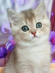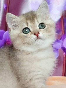 Though just a few months old, Roza already embodies the signature traits of the beloved British Shorthair kittens — a plush, velvety coat, a perfectly round face with those iconic chubby cheeks, and big, expressive eyes that sparkle with curiosity and affection.