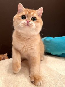 At just a few months old, Teddy already showcases the hallmark traits of the British Shorthair breed β€” a short, plush coat that begs to be petted, a round face with adorable chubby cheeks, and large, expressive eyes that sparkle with curiosity and warmth.