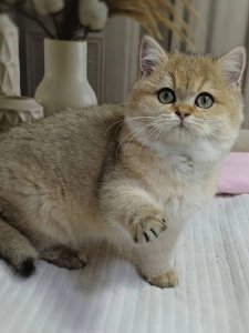 Yolandaβs velvety short coat highlights the iconic appeal of British Shorthair kittens. Her adorable round face, complete with chubby cheeks and large, expressive eyes, radiates kindness, serenity, and irresistible sweetness.