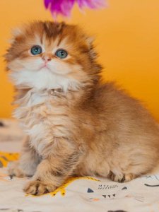 Meet Zarina, a captivating little companion full of charm, affection, and joyful energy. With her signature folded ears and big, round eyes, she is a true purebred Highland Fold kittenβ€”ready to shine as the star of any home. Zarina’s fluffy, cloud-soft coat invites gentle cuddles, beautifully highlighting the unique allure that defines Highland Fold kittens. Her distinctive looks and warm personality make her impossible to overlook.