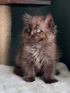 Introducing Kay, the captivating purebred Highland Straight kitten whose gentle spirit and adorable looks make her simply irresistible. With her fluffy coat, straight ears, and big, round eyes, Kay is a shining example of the beloved Highland Straight kittens.