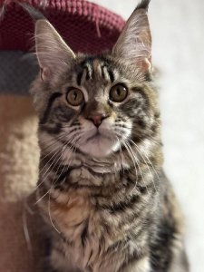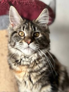 Meet Ambra, the majestic and lively purebred Maine Coon kitten whose beauty is only matched by her sparkling personality. With her luxurious coat and captivating green eyes, Ambra is a perfect representation of the beloved Maine Coon breed.