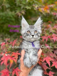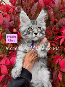 Meet Athena, an enchanting blend of elegance, fluff, and irresistible charm. This purebred Maine Coon kitten dazzles with her luxurious long fur, tufted ears, and wonderfully fluffy tailβsignature traits that make Maine Coons one of the most adored breeds in the world.