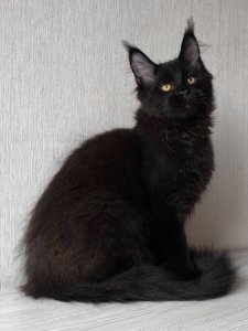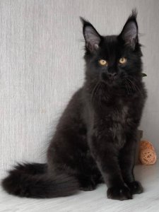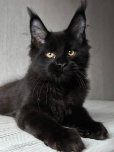 Grafβs long, silky fur and fluffy tail showcase the distinctive beauty of Maine Coon kittens. His captivating green eyes gleam with curiosity, revealing a kitten who effortlessly balances regal elegance with irresistible playfulness.
