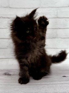 Meet Karina, a stunning purebred Maine Coon kittens who exudes both elegance and warmth. With her luxurious long fur, tufted ears, and magnificent fluffy tail, Karina perfectly represents the beauty and charm of this beloved breed.