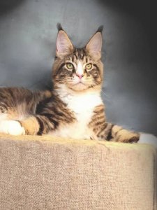 Meet Nikolia, a truly majestic purebred Maine Coon kitten with a playful and affectionate personality! Known as the “gentle giants” of the cat world, Maine Coons are admired for their striking looks and loving nature—and Nikolia is no exception.