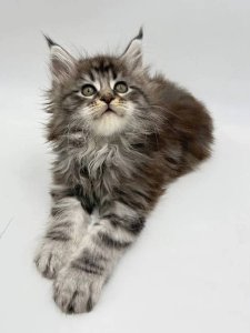 Meet Nina, a delightful blend of elegance, warmth, and lively curiosity. With her captivating presence and striking features, she is a true purebred Maine Coon kittenβready to become the heart of any home. Ninaβs luxurious long coat beautifully reflects the natural splendor and gentle wildness that define Maine Coon kittens. Her tufted ears, fluffy tail, and radiant green eyes give her a refined, regal appearance, while her friendly and playful personality brings joy to every moment.
