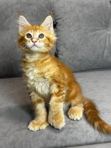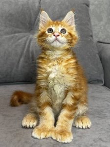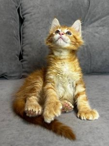 Meet Wotan, a magnificent kitten whose powerful appearance is beautifully balanced by his gentle, playful nature. With his impressive size and luxurious long coat, Wotan is a stunning example of a purebred Maine Coon kitten, admired for their striking looks and friendly, affectionate personality. His flowing fur and plush tail showcase the timeless beauty of Maine Coon kittens, making him impossible to overlook.