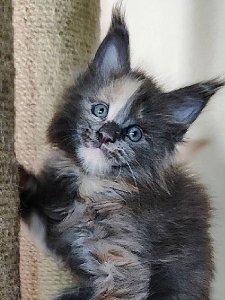 Meet Ornella, the enchanting Maine Coon kitten whose regal elegance and lively spirit make her a one-of-a-kind companion. With her luxurious coat and warm, friendly nature, she’s ready to bring love and joy to your home.