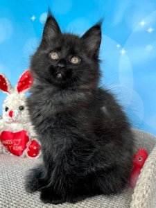 Meet Prada, a stunning vision of grace, beauty, and lively curiosity. With her impressive presence and refined charm, she is a true purebred Maine Coon kittenβdestined to become the jewel of any home. Pradaβs luxurious long coat beautifully showcases the natural grandeur and softness that define Maine Coon kittens. Her tufted ears, fluffy tail, and radiant green eyes give her a regal allure, while her playful and friendly personality adds warmth and joy to every moment.