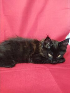 At just a few months old, Taya is already showing off her luxurious long fur, tufted ears, and fluffy tail. Her expressive eyes are a beautiful shade of green, and she has a playful and curious personality that will surely win your heart.