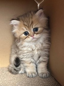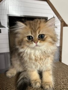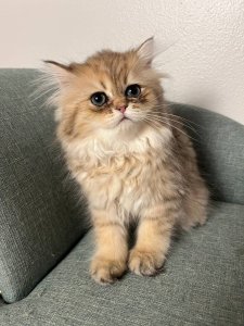 Meet a pure Golden Girl, Lunetta, who was born between Golden Dad and Mom. She will have everything a Golden Persian Cat needs to have, such as green eyes, a pink nose, and black outlines when she matures.