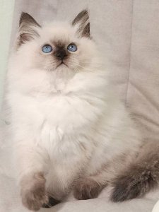 Even at just a few months old, Nala already displays the hallmark features of the Ragdoll breed. Her soft, fluffy coat feels wonderfully plush, while her striking blue eyes add a mesmerizing touch to her sweet expression. She is growing into the graceful size and gentle personality that Ragdolls are known and loved for.