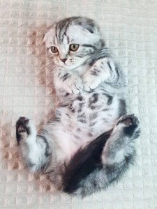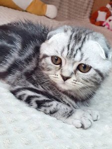 Only a few months old, Gapochka already showcases the signature features of the beloved Scottish Fold kittens. She’s affectionate, calm, and always ready for cuddles—making her a perfect companion for cozy evenings and playful afternoons.