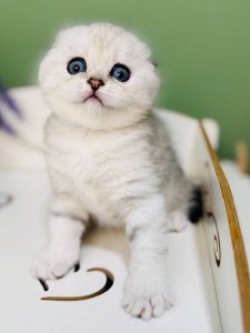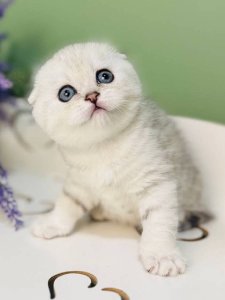 Say hello to Han, a purebred Scottish Fold kitten whose sweet nature and signature charm are simply out of this world. With his folded ears and big, soulful eyes, Han is the picture of feline elegance and affection.