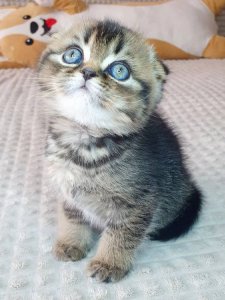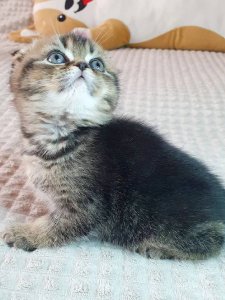Even at just a few months old, Knopik embodies the beloved features of the Scottish Fold kittens. His affectionate nature and calm personality make him a perfect cuddle buddy, while his playful curiosity ensures there’s never a dull moment.