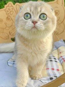 Even at just a few months old, Max already shows the hallmark traits of the Scottish Fold kittens—a round face, cuddly appearance, and a gentle nature that makes him the perfect little companion.