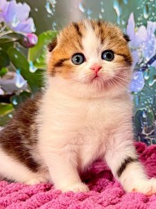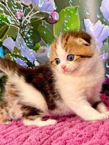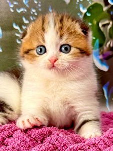 Meet Milana, a charming little kitten whose loving personality and unique appearance make her truly unforgettable. With her soft, plush coat and affectionate nature, she perfectly captures the irresistible charm of Scottish Fold kittens.