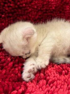 Miracle’s plush coat is as soft as it is inviting, offering a perfect example of the timeless elegance of Scottish Fold kittens. His round face, framed by those signature folded ears, exudes serenity and warmth. At just a few months old, Miracle already displays the hallmark features of his breed, making him an exceptional companion.