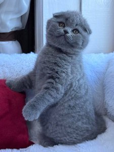 Meet Nice, an irresistibly sweet and affectionate little boy whose calm presence and adorable looks make him truly special. With his signature folded ears and big round eyes, Nice perfectly embodies the timeless charm of a Scottish Fold kitten. His plush, velvety coat is made for cuddles, offering a beautiful glimpse into the elegance of Scottish Fold kittens.