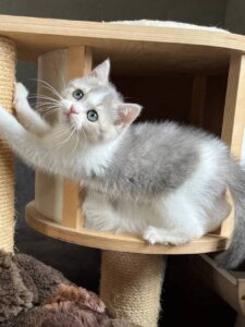 Introducing Bona, the adorable and charming purebred Scottish Straight kitten β€” a true delight with her playful and affectionate personality! With her soft, fluffy coat and expressive eyes, Bona is ready to capture your heart and fill your home with love and joy.