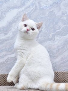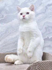 Even at just a few months old, Irvin already displays the hallmark features of the Scottish Straight breed. His neat straight ears frame his adorable round face, while his soft, fluffy coat makes every cuddle extra cozy. His big, expressive eyes shine with curiosity and playful energy.